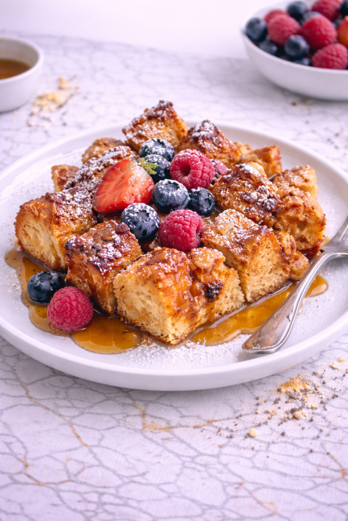 Each bite tastes like classic French toast, but with deeper flavor and a more satisfying texture thanks to the overnight soak. It feels indulgent without being overwhelming.