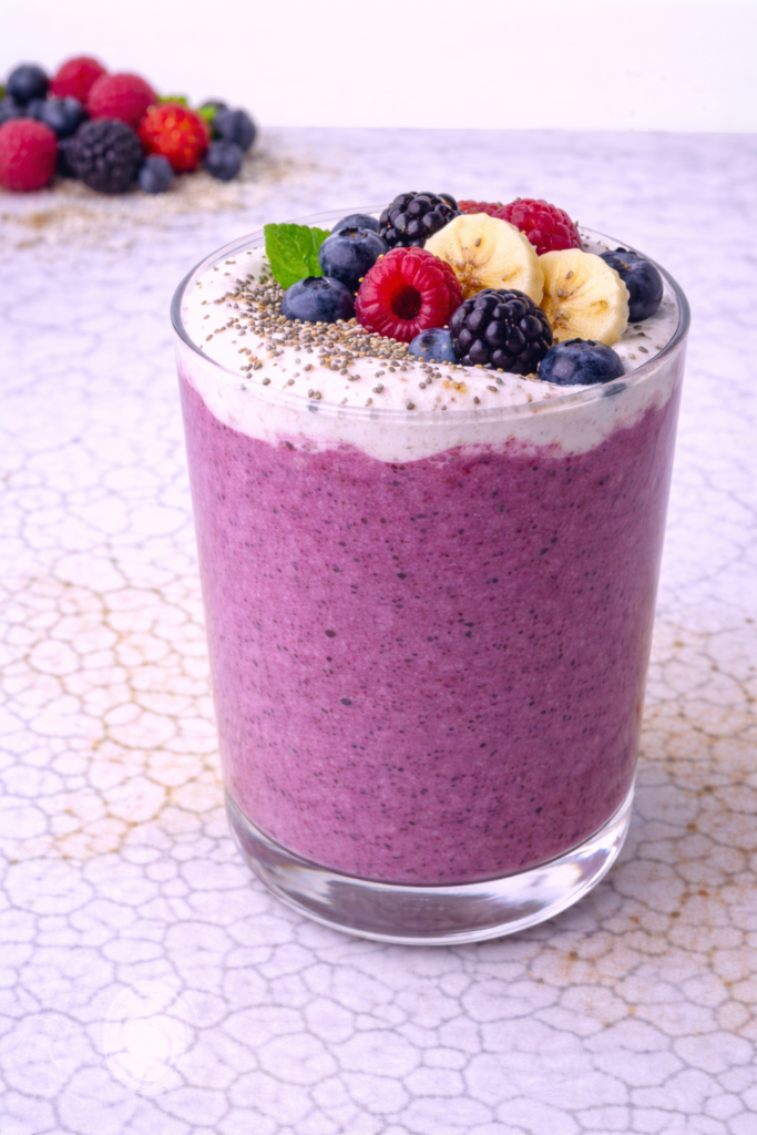 The berries bring brightness and freshness, while the creamy base helps the smoothie feel restorative rather than light or empty.