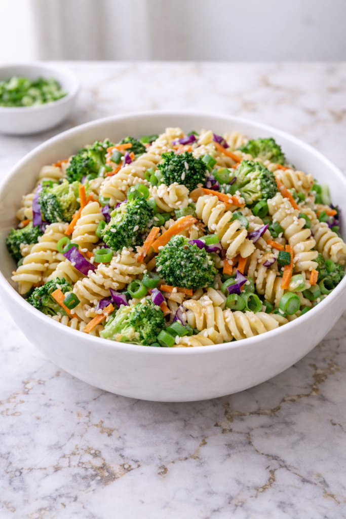 What makes this pasta salad so memorable is how thoughtfully it’s put together. Tender pasta, crisp broccoli, bits of sweetness, and a creamy dressing that ties everything together without overwhelming the vegetables.