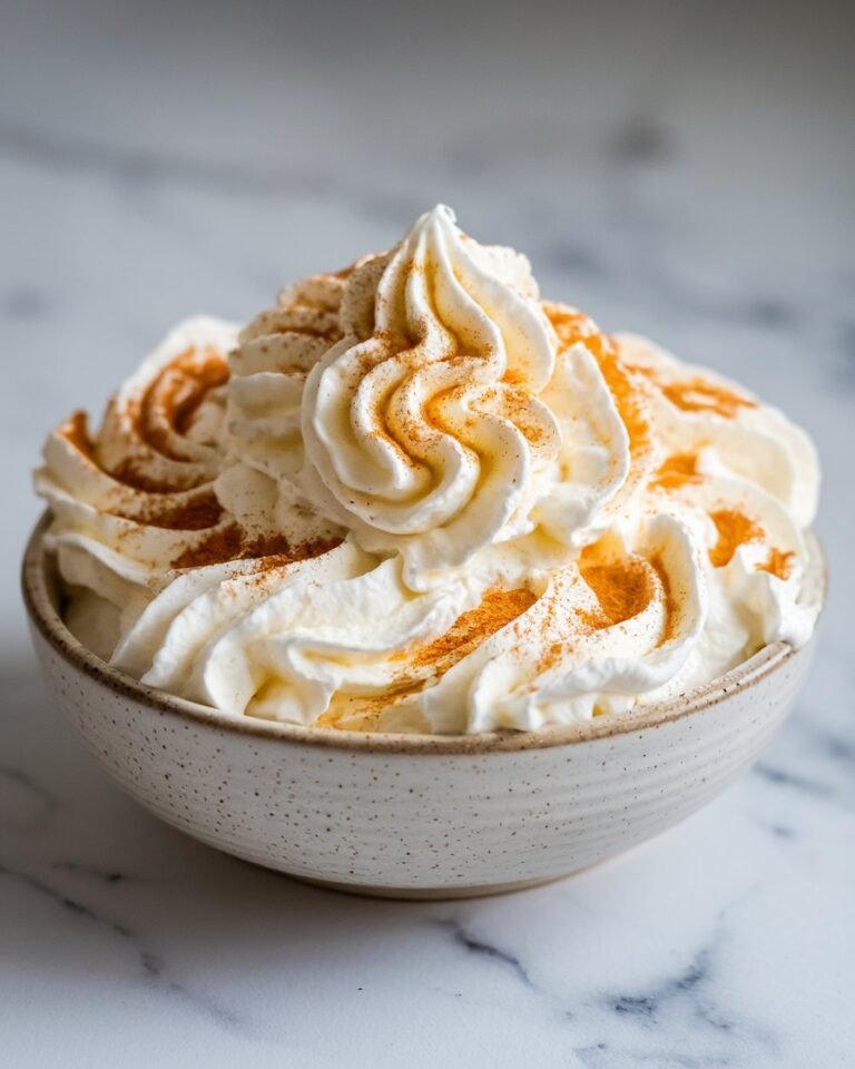 Autumn's perfect dessert companion, this spiced pumpkin whipped cream transforms ordinary treats into fall favorites with just a few simple ingredients.