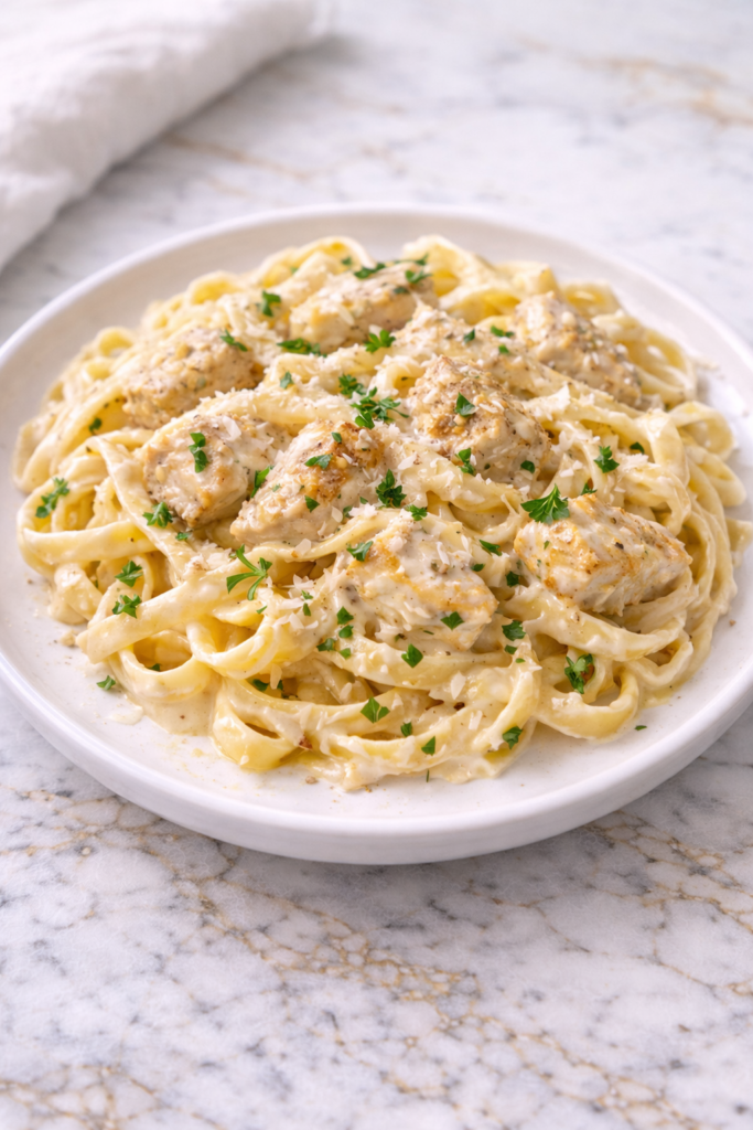 Tender chicken and pasta coated in that creamy, garlicky sauce is the kind of dinner that feels indulgent without requiring a lot of effort.