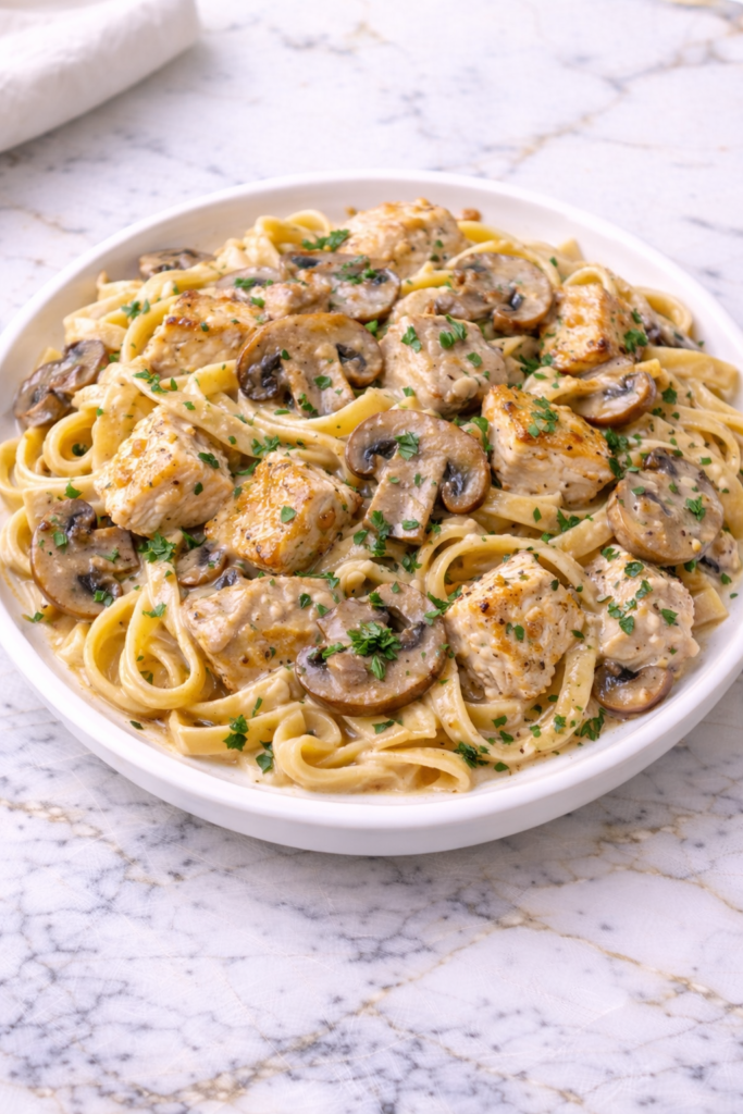 Chicken and mushrooms together in a creamy sauce is one of those combinations that just works — earthy, savory, and satisfying in a way that makes every bowl feel like a real treat.