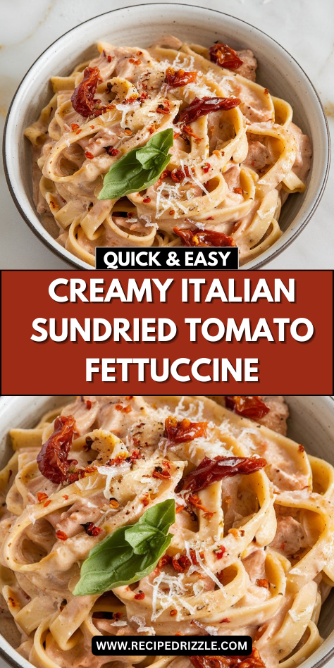 I’ve been dreaming about this Creamy Italian Sundried Tomato Fettuccine all week. There’s something about the combination of rich, velvety sauce with tangy sun-dried tomatoes that makes my taste buds dance.