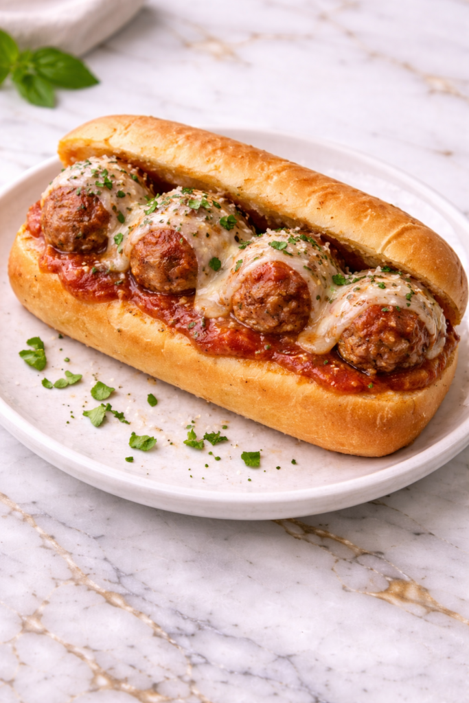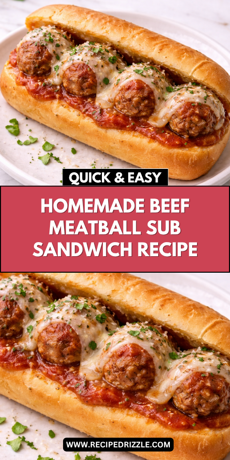 Homemade Beef Meatball Sub Sandwich delivers everything you want in a comforting meal. The meatballs are tender and flavorful, the marinara sauce is rich and savory, and the melted cheese ties everything together perfectly. Each bite is hearty, satisfying, and packed with classic flavors.