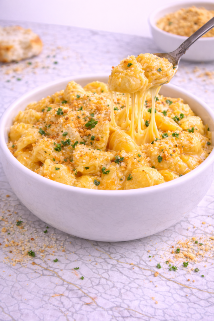 The result is smooth, rich, and deeply comforting without being heavy or greasy. This is the mac and cheese people remember from childhood, the one that feels familiar and reassuring from the very first bite.