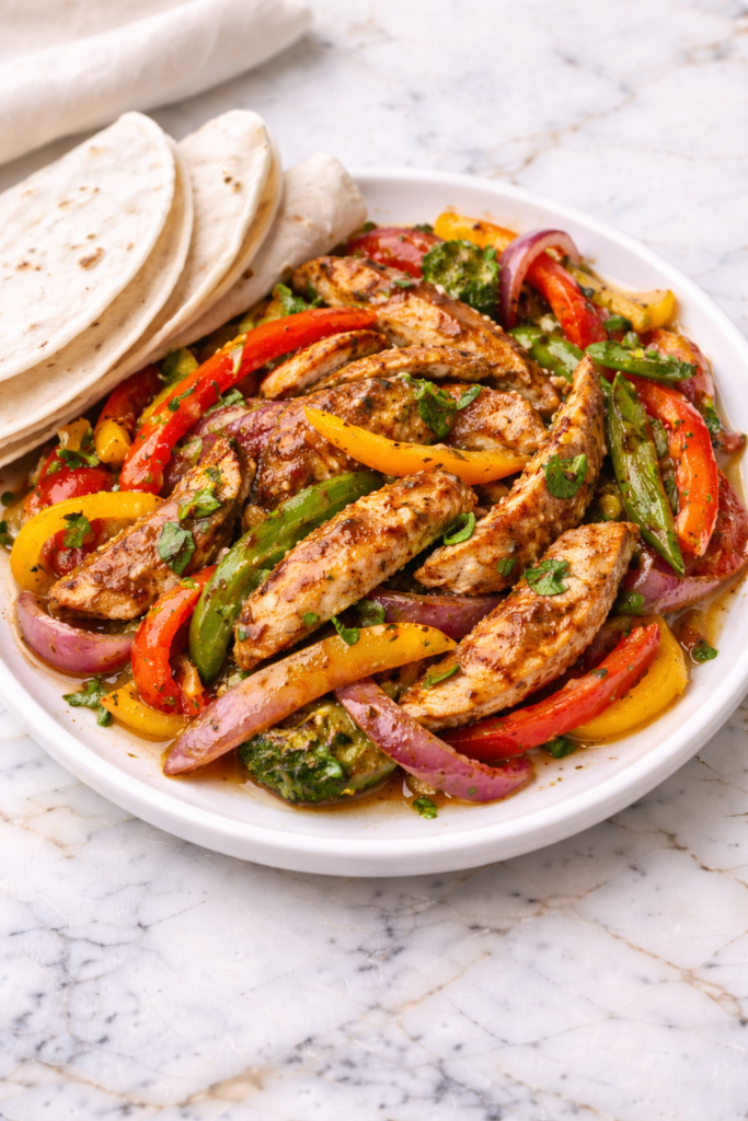 Skillet Chicken Fajitas with Bell Peppers is all about bold flavor and easy preparation, making it perfect for families and busy schedules. The chicken is seasoned with a warm blend of spices, then cooked until juicy and slightly caramelized, while the bell peppers and onions add sweetness and texture. Everything comes together in one skillet, creating a dish that’s both satisfying and easy to clean up.