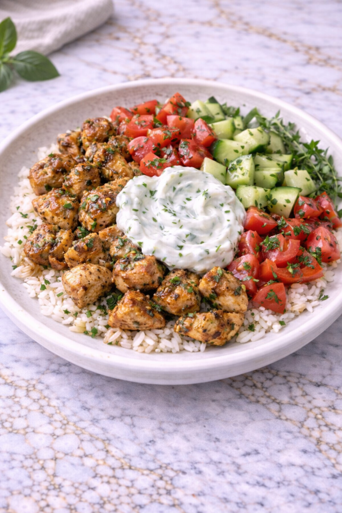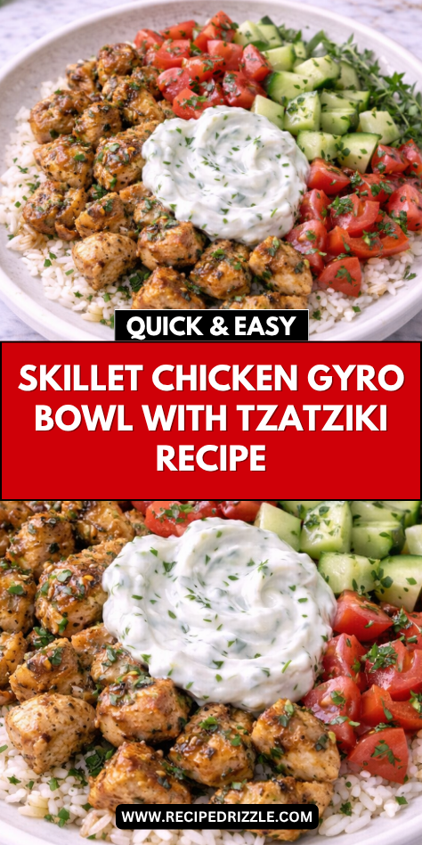Skillet Chicken Gyro Bowl with Tzatziki is a fresh, flavorful recipe that brings together simple ingredients in a satisfying and balanced way. With its combination of warm chicken, crisp vegetables, and creamy sauce, it’s a meal that feels both nourishing and enjoyable.