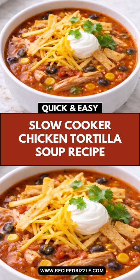 Slow Cooker Chicken Tortilla Soup is incredibly versatile and can be served in a variety of ways depending on the occasion. For a simple family dinner, serve it as a standalone meal topped with crunchy tortilla strips and a sprinkle of cheese for added texture and flavor.