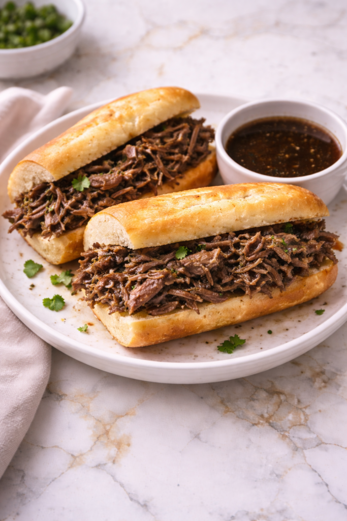 I’ll show you how to season the roast so the broth is rich and flavorful, not watery or bland, and how to pile the meat onto toasted hoagie rolls with melted provolone.