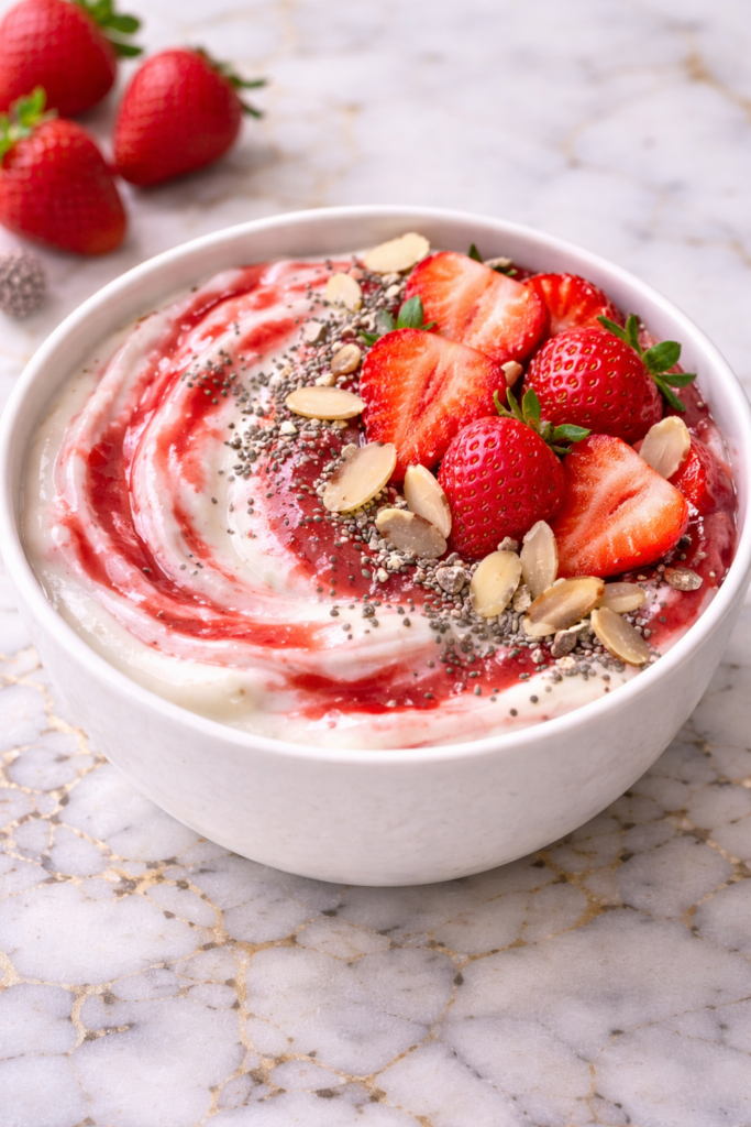 I love how versatile this dessert bowl is. You can use Greek yogurt for extra protein and creaminess, plant-based yogurt for a vegan option, or mix in other fresh berries and fruits depending on what’s in season. The natural sweetness of strawberries can be enhanced with a drizzle of honey or maple syrup, and toppings like nuts, seeds, or coconut flakes add crunch and additional nutrition.